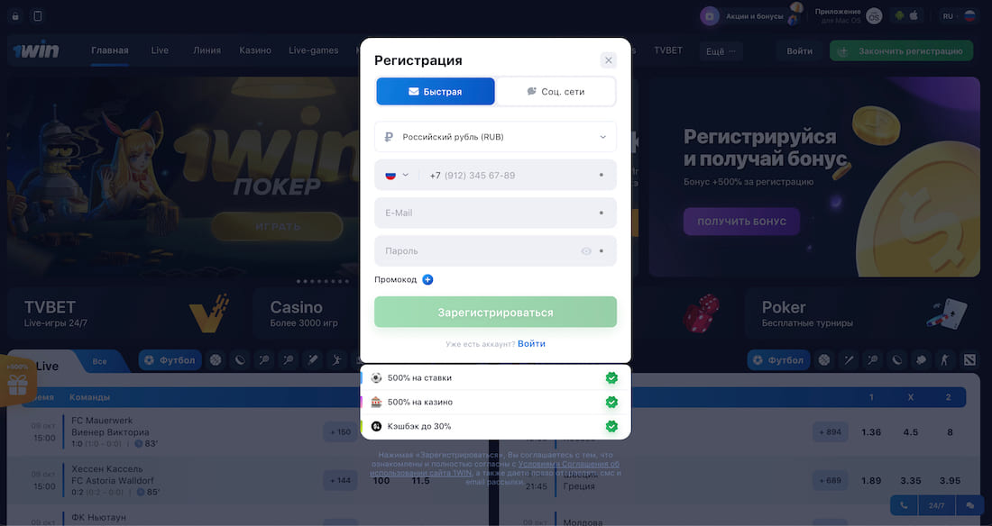Букмекерская контора 1 Win разработала такую процедуру регистрации, с которой легко будет разобраться даже неопытным игрокам. Чтобы создать аккаунт, следуйте этим рекомендациям: